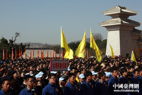 4月4日上午,壬辰年(2012)清明公祭軒轅黃帝典禮在陜西黃帝陵隆重舉行,海內(nèi)外一萬多名中華兒女代表參加公祭典禮。(中國臺灣網(wǎng) 楊麗 攝)