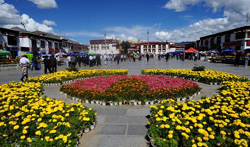 8月22日拍攝的“中國歷史文化名街”拉薩八廓街中心的大昭寺廣場。新華社記者格桑達(dá)瓦攝