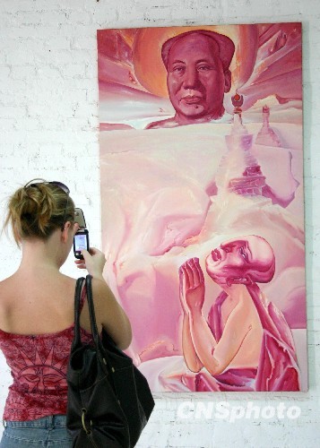 “心境·西藏當代本土畫家聯(lián)展”近日在北京798藝術中心舉行。展覽現(xiàn)場布置著別致的畫作,單純的色彩,配上佛教音樂,使人仿佛置身于千里之外的拉薩,參展藝術家大部分來自西藏,他們的畫作更多的是源于對歷史與文化的深情表達,試圖捕捉能與全球文化融匯交流的藝術靈感,向外界呈現(xiàn)一種另外的藝術覺悟。 中新社發(fā) 郭海鵬 攝