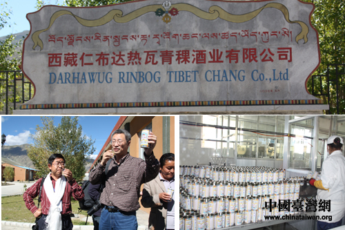 圖二 左為西藏行記者品嘗喜孜青稞酒,右為青稞酒制作間。(中國臺灣網(wǎng) 李典典攝)