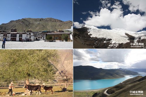 左圖二放牛的牧民,右圖二為羊卓雍湖。(中國臺灣網(wǎng) 李典典攝)