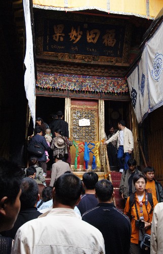 信徒和游客們在有1300多年歷史的布達(dá)拉宮觀音殿朝拜參觀(2006年6月9日攝)。新華社記者 格桑達(dá)瓦 攝