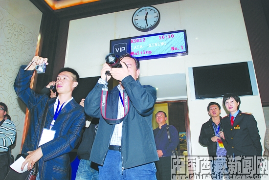 青藏鐵路成為采訪團(tuán)最為感興趣的話題之一,8月31日12時(shí)左右,拉薩火車站客運(yùn)運(yùn)轉(zhuǎn)部工作人員接待了采訪團(tuán),介紹了拉薩火車站的運(yùn)轉(zhuǎn)情況。據(jù)悉,拉薩火車站今年已發(fā)送旅客人數(shù)57萬人次。12時(shí)53分,正當(dāng)采訪團(tuán)準(zhǔn)備離開之際,一聲汽笛從遠(yuǎn)方傳來,西寧開往拉薩的臨時(shí)客運(yùn)列車緩緩駛進(jìn)了拉薩火車站,工作人員告訴采訪團(tuán),隨著今年暑運(yùn)高峰期過去,臨客已完成今年使命,采訪團(tuán)用鏡頭記錄下了這特殊時(shí)刻。
