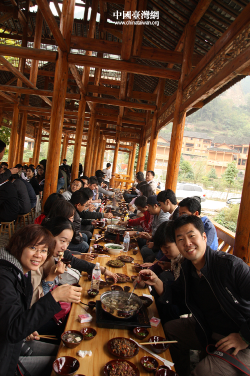 風(fēng)水橋上吃長(zhǎng)桌席,爽。ㄖ袊(guó)臺(tái)灣網(wǎng) 楊永青 攝)