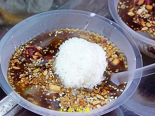 拌糕粉時水不宜灑過多,松散、濕潤即可,要選用優(yōu)質大米。糕粑潔白,藕粉透明,口味甜香、細滑爽口。原名為糕粑稀飯,為貴陽傳統(tǒng)名小吃。