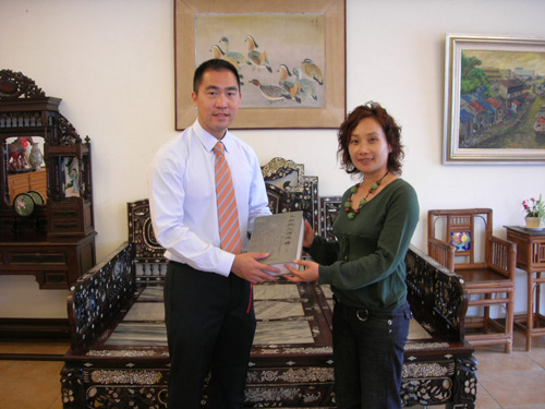 福建臺(tái)記者向霧峰林家后人致贈(zèng)漳州林家族譜(來(lái)源:央視網(wǎng))