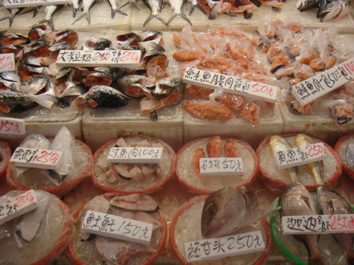 基隆碧沙漁港市場(chǎng)的新鮮海產(chǎn)品