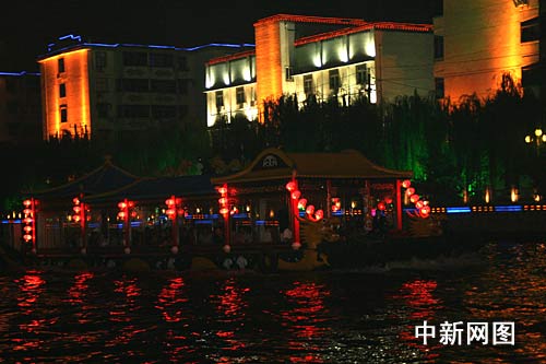 晚上9時(shí)許,記者在運(yùn)河邊看到,古運(yùn)河的游船忙得不可開交,許多游客排著隊(duì)等著感受“船在水中走,人在畫中游”的勝景。