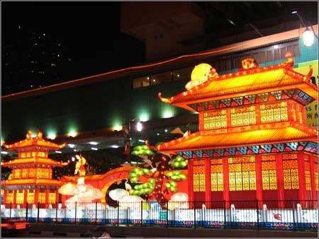 新加坡是一個(gè)旅游城市,中秋佳節(jié)無疑是一個(gè)吸引游客的絕好機(jī)會。每年中秋臨近時(shí),當(dāng)?shù)刂臑豕?jié)路、新加坡河畔、牛車水及裕華園等地裝飾一新。入夜時(shí)分,華燈初上,整個(gè)大街小巷一片紅彤彤的景象,令人心動。