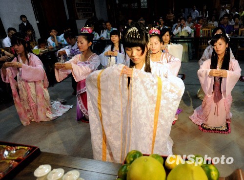 10月2日晚,十名身著漢服的青年女子在福州八旗會館按傳統(tǒng)舉行的祭拜月亮儀式上先后進(jìn)行敬香、敬酒、獻(xiàn)花、獻(xiàn)月餅、誦讀祭文、拜月禮儀,體驗(yàn)傳統(tǒng)中秋民俗。中國古代每逢農(nóng)歷中秋佳節(jié),就有“祭拜月神”的習(xí)俗。中新社發(fā) 劉可耕 攝