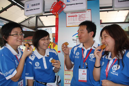 9月14日,節(jié)日在崗的志愿者們吃上了由北京市西城區(qū)團(tuán)委送來的中秋月餅。當(dāng)日是中秋佳節(jié),北京西城區(qū)38個(gè)殘奧會(huì)城市志愿者服務(wù)站點(diǎn)的300多名志愿者依然堅(jiān)守崗位,為市民和游客提供熱情周到的服務(wù)。新華社發(fā)(焦偉攝)