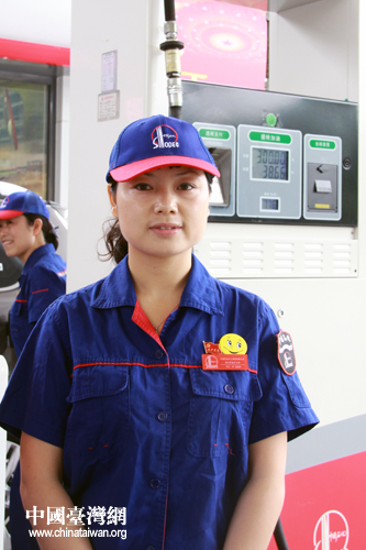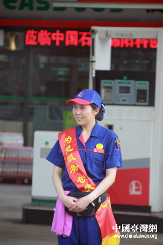 綿陽科創(chuàng)園加油站,員工微笑送別車輛離開。(中國臺灣網(wǎng) 楊麗 攝)