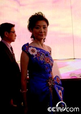 藍(lán)色禮服更顯周濤身材修長(zhǎng)