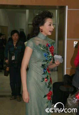 董卿橄欖綠色禮服清新淡雅,是春晚舞臺(tái)上少見的款式