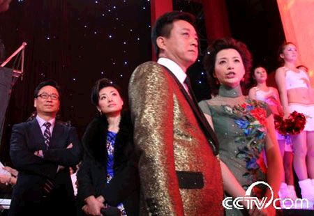 朱軍的金色禮服在女主持中也顯得很“跳”