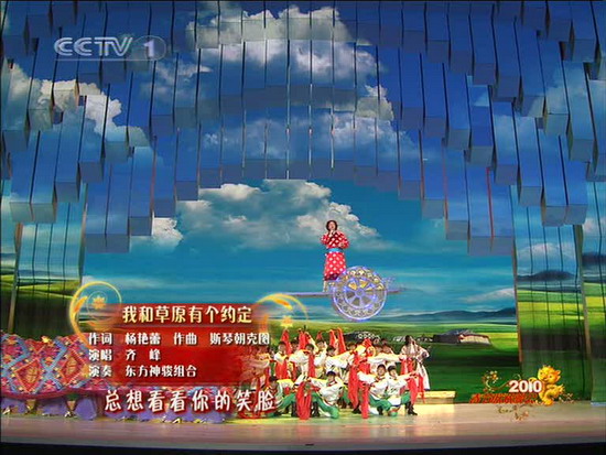 c娛樂訊 2月13日(除夕)晚20:00,2010年央視春節(jié)晚會(huì)通過中央電視臺(tái)面向全球直播,新浪娛樂同步視頻圖文直播。圖為《我和草原有個(gè)約定》 。
