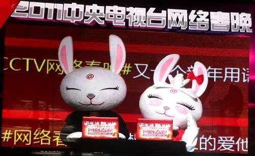 晚會主題歌《給力》以其優(yōu)美的旋律和動感的節(jié)奏,深受網友追捧,傳唱率極高。晚會還一改以往主持人播報賀信賀電的慣例,由可愛的吉祥兔愛他(她)兔以網絡語言來播報。