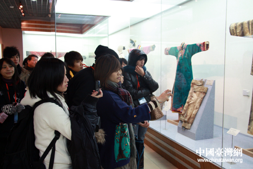參加全國(guó)臺(tái)聯(lián)2009年冬令營(yíng)的臺(tái)灣少數(shù)民族師生,今天來到中央民族大學(xué)交流聯(lián)誼。圖為師生們參觀中央民族大學(xué)博物館(鐘寶華 攝)