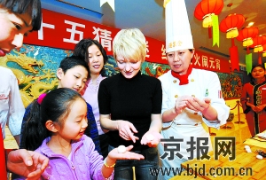 2月7日,來自加拿大的安娜女士(前右二)和中國朋友一起在學(xué)包湯圓!