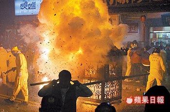 夜弄土地公。臺(tái)北市內(nèi)湖地區(qū)元宵節(jié)民俗活動(dòng)夜弄土地公昨晚登場(chǎng),有百年歷史的枧頭店福德祠土地公盛大出巡,商家和民眾將鞭炮圈在神轎上狂炸土地公,深信炸愈多、財(cái)運(yùn)愈旺。來(lái)源:臺(tái)灣《蘋(píng)果日?qǐng)?bào)》
