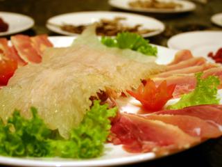口味獨(dú)特的魚(yú)翅養(yǎng)生鍋,乃以黨蔘、黃耆、淮山、紅棗、枸杞、川芎等中藥材為湯底,加入2斤黃皮土雞去熬煮的高湯,放入擁有膠原蛋白與膠質(zhì)的精選春揀翅,4人份的鍋物份量,真是吃巧不吃飽。