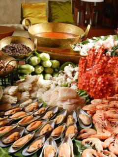 冬天的海鮮特別肥美,當(dāng)然如果可以的話(huà),不妨在火鍋里加些生猛海鮮料。像臺(tái)北喜來(lái)登大飯店二樓的桃山廳,就推出了超猛的活海鮮火鍋料理套餐。特地以進(jìn)口自日本北海道每只重達(dá)近3公斤的鱈場(chǎng)蟹,以及澳洲塔斯馬尼亞空運(yùn)來(lái)臺(tái)每只重達(dá)近1公斤的黑唇鮑活鮑魚(yú),想給你來(lái)場(chǎng)鮮活大會(huì)串。