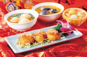 除此之外,蟹肉、山藥,還有熱門的寒天,都成了元宵的新主角。六?蜅5摹俺戎}卜絲湯元宵”,將柳橙汁加入外皮,炒過的白蘿卜絲、蝦米與香菇當(dāng)內(nèi)餡,配上香菇雞湯;另一款“寒天三色湯圓”,則把人氣旺的寒天、抹茶作湯底,加入混合了紫山藥、紅蘿卜及橙汁作成的三色湯圓。