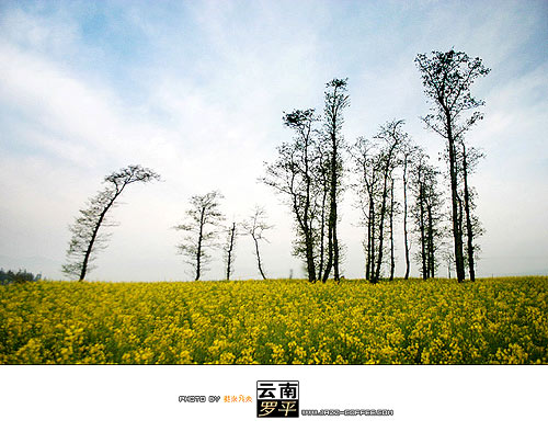 攝影:羅平地處溫濕地帶,陰雨天較多,這給拍攝帶來一定難度。因為拍攝油菜花一般需要較明亮的光線,這樣才能表現(xiàn)出它的鮮亮和艷麗。切勿逆光拍攝,尤其是當你面對大場景時,因為這樣拍出的油菜花會顯得灰暗,毫無生機。一般采用順光或側(cè)光,拍出的照片亮麗明快,層次分明,色彩飽和度高。