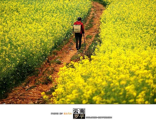金色的山崗、金色的溝壑、金色的原野、金色的河堤、金色的花壇、金色的盆景,金色鋪設(shè)了羅平的山山水水,羅平成了金色的世界。
