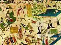 另外還有民族傳統(tǒng)神話題材及各種各樣的裝飾圖案。從壁畫(huà)中,可以看到各民族各階層的各種社會(huì)活動(dòng),如帝王出行、農(nóng)耕漁獵、冶鐵釀酒、婚喪嫁娶、商旅往來(lái)、使者交會(huì)、彈琴奏樂(lè)、歌舞百戲……世間萬(wàn)象,林林總總。