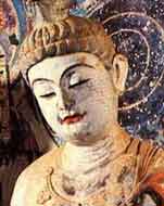 莫高窟的彩塑多屬佛教人物及其修行涅盤(pán)事跡的造像。因?yàn)槟呖叩膸r質(zhì)疏松,無(wú)法進(jìn)行雕刻,工匠們用的是泥塑。唐朝以前的泥塑在其它地方很少保存下來(lái),因此莫高窟的大量彩塑更為珍貴難得。